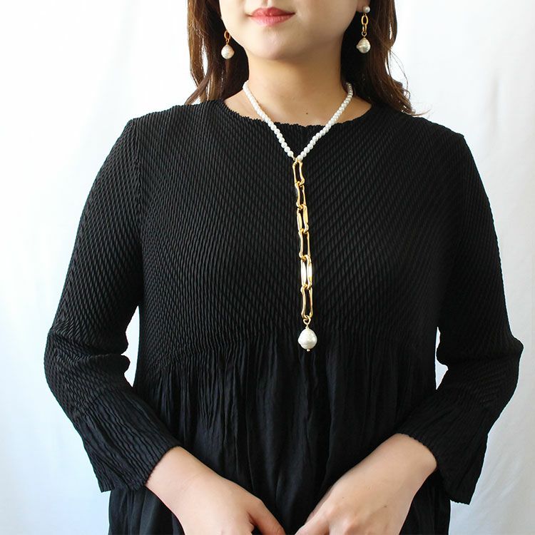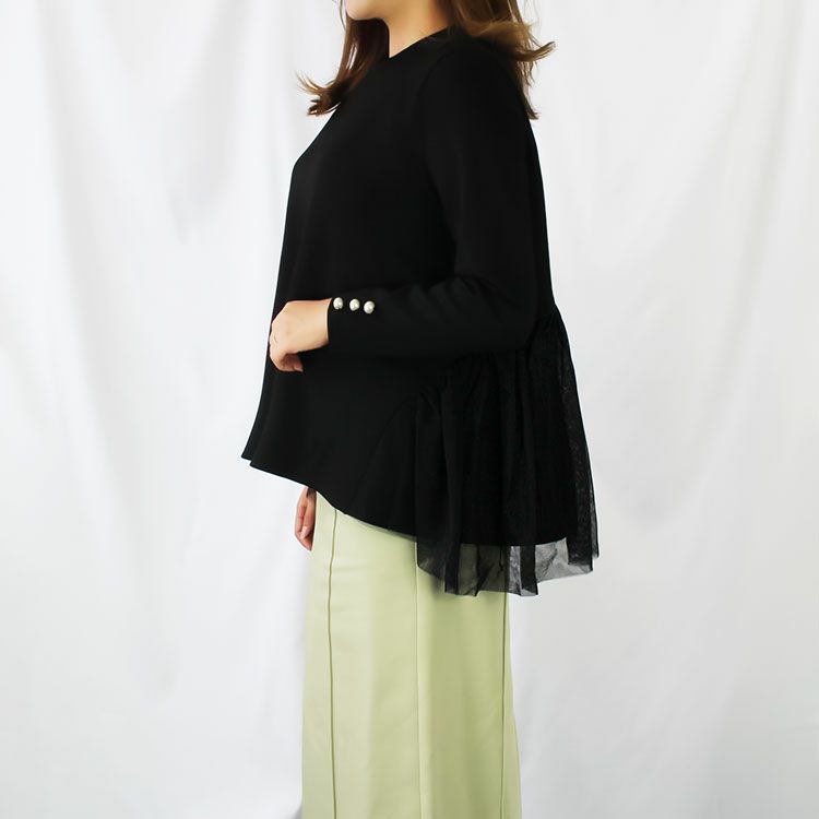 プリーツ×オーガンジー重ねフロッキードットスカート