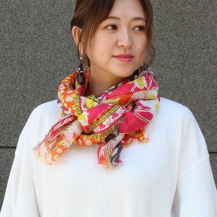 【Liebe】シルク混プリントワッシャー加工ストール/2156083-